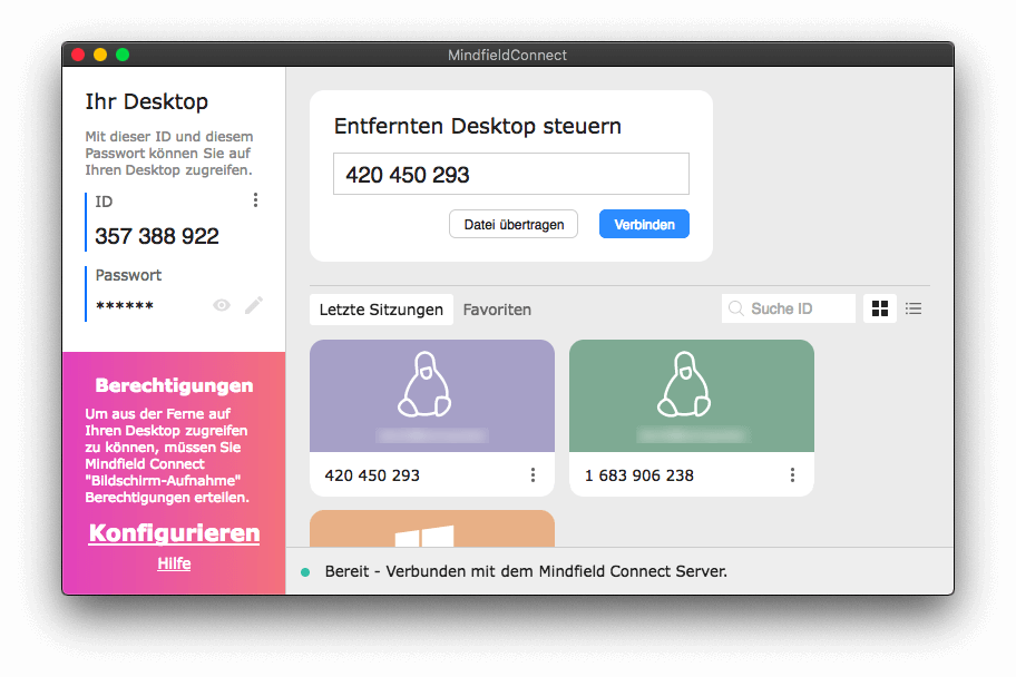 Bestätigen Sie die Beendigung von Mindfield Connect und starten